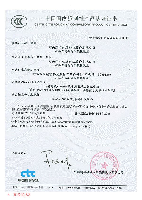 • Xuchang Huanyu Safety Glass Co., Ltd. ,formally founded on Oct 1st, 2004